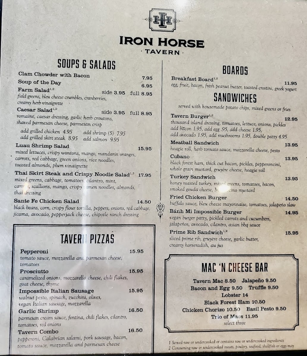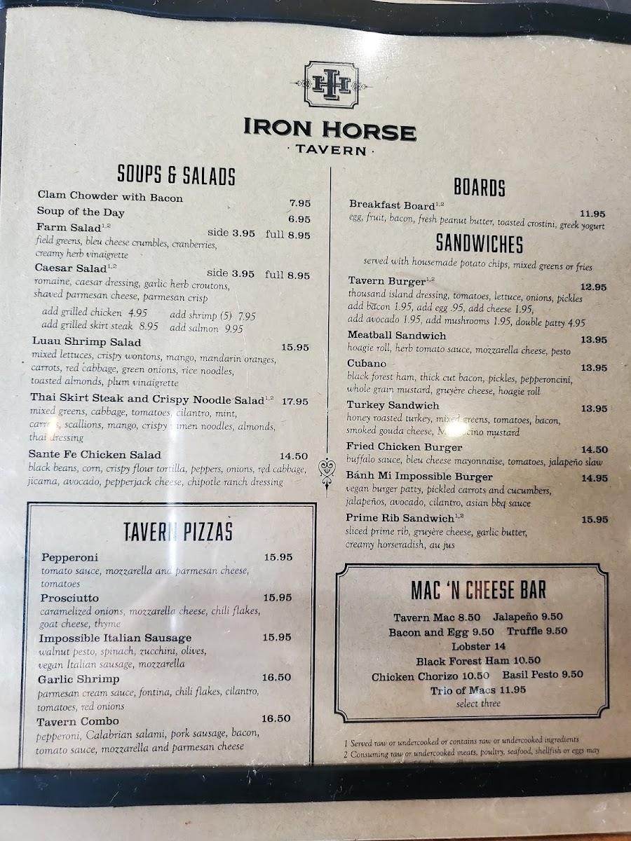 Basking in the celebratory atmosphere or seeking a quieter corner to enjoy your meal? Iron Horse Tavern is designed for both. Whether you're indulging in breakfast classics like the Eggs Benedict or tucking into a satisfying floral-infused Santa Fe Salad, the taste is complemented perfectly by the inviting ambiance filled with laughter, conversations, and tantalizing aromas wafting through the air.